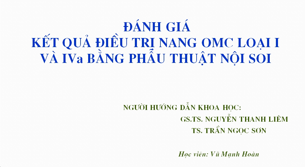 Đánh giá kết quả điều trị nang OMC loại I và IVa bằng phẫu thuật nội soi PPT